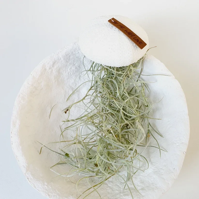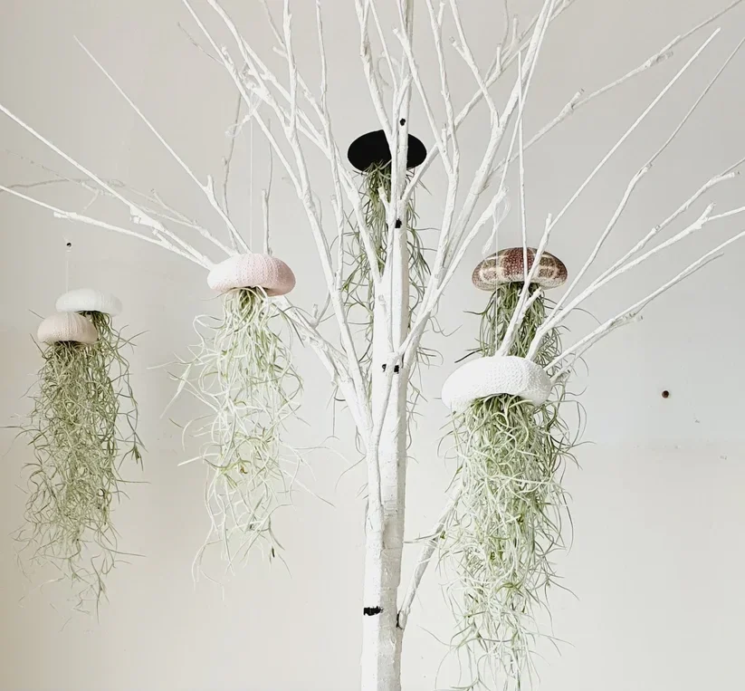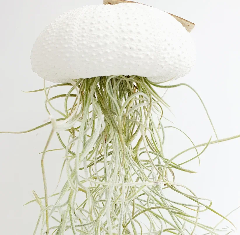 Superleuk zijn deze op kwallen uitziende luchtplantjes. De Tillandsia (luchtplant) leeft van lucht, water en licht. Dit betekend dat ze niet in de aarde hoeven en je leuke creaties met deze plantjes kan maken. Wij hebben de Jellyfish airplant gemaakt. Het plantje hangt in de echte zee-egel schelp aan een visdraadje. Zo lijkt het net een kwalletje. De plantjes willen graag 1 x in de week een sproeibeurtje, je krijgt een kaart erbij met informatie over de verzorging van deze leuke plantjes.