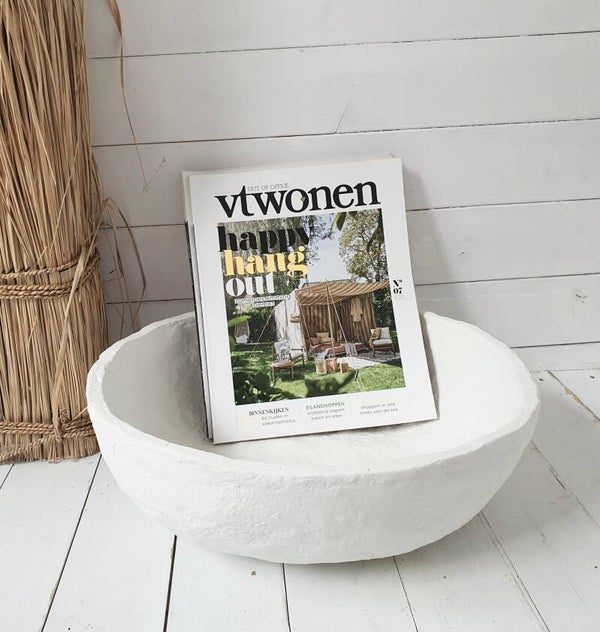 Hele grote, supertoffe papiermache schaal. Waarmee decoreer jij deze gave schaal.? De schaal kan niet tegen water dus niet geschikt voor natte producten!