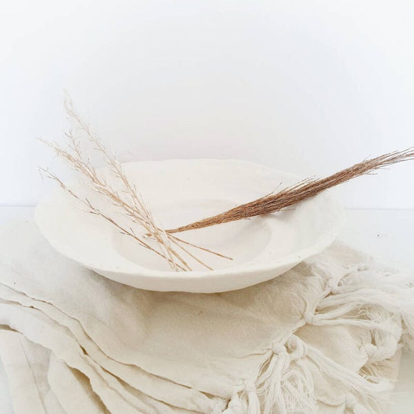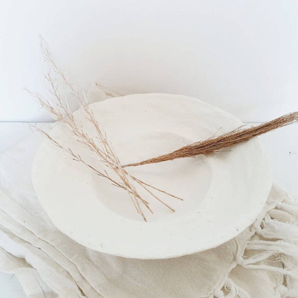 Grote papiermache schaal met een diameter van maar liefst 38 cm. Leg je mooiste spullen erin of brand een mooi kaars in zand erin. Doordat de schaal handgemaakt is is deze uniek.