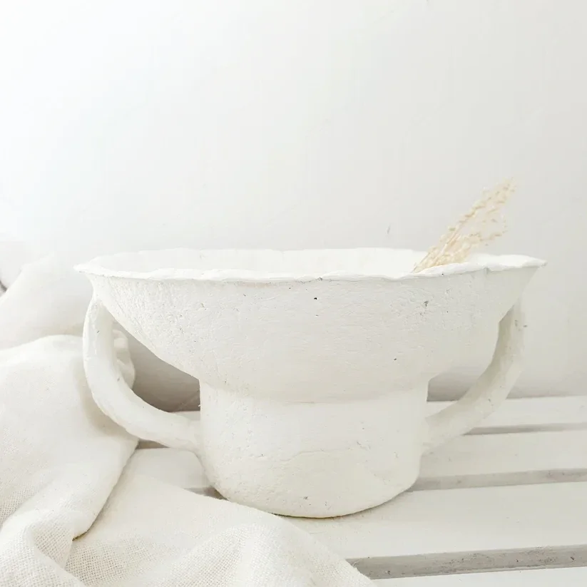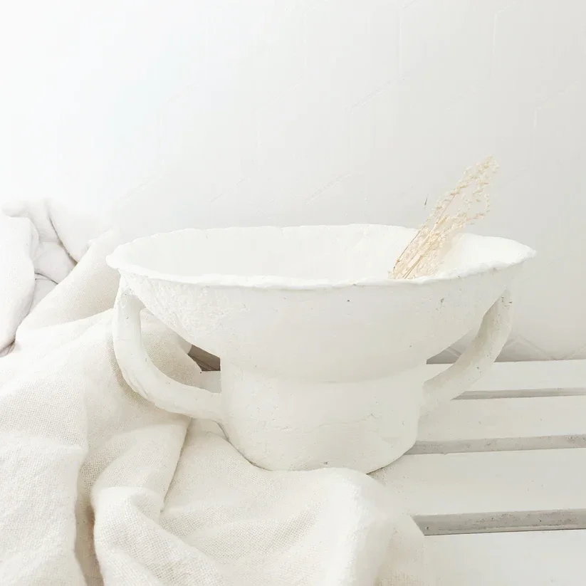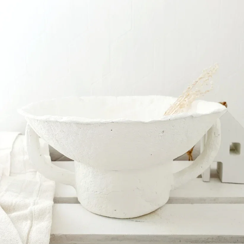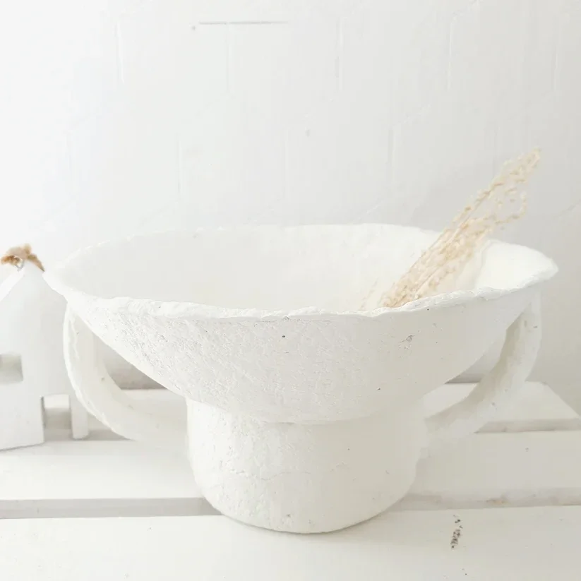 Hoe tof is deze mooie papiermachee schaal met oren. Wij vinden hem supergaaf. De schaal is voor droog gebruik, je kan er dus géén vochtige materialen inzetten. Elke schaal is handgemaakt en dus uniek. De schalen kunnen daardoor licht afwijken van de foto's.