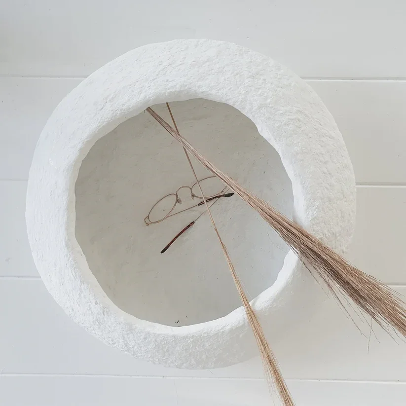 Hele grote, supertoffe papiermache schaal. Waarmee decoreer jij deze gave schaal.? De schaal kan niet tegen water dus niet geschikt voor natte producten!